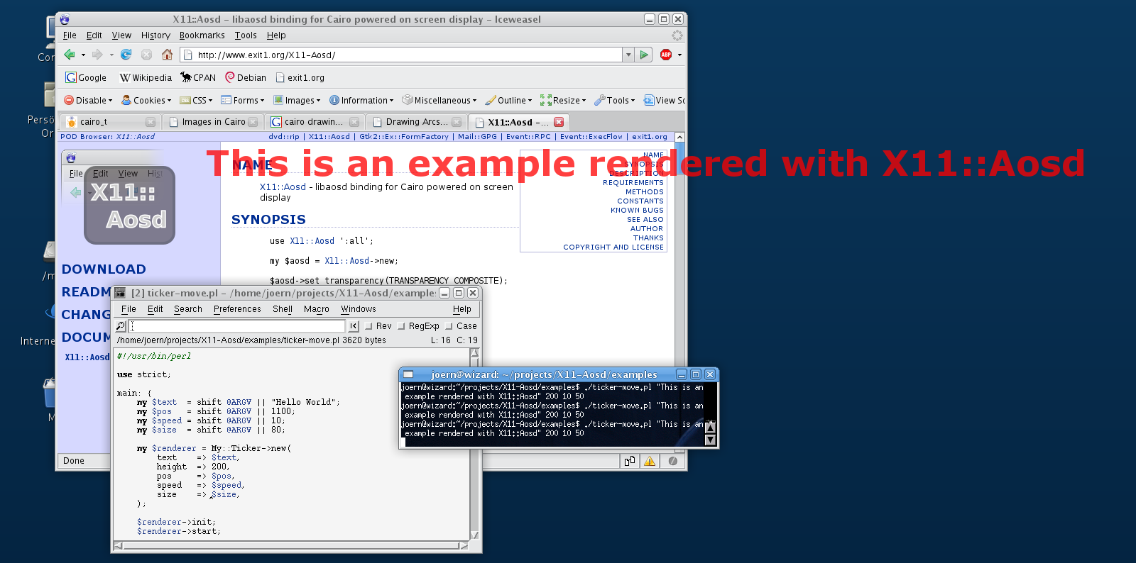 X11::Aosd - libaosd binding for Cairo powered on screen display